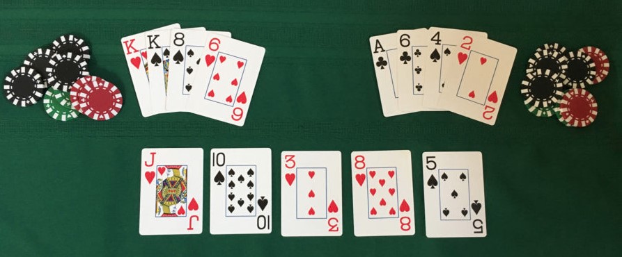 В приведенном выше примере игрок 2 выиграл с самой высокой мастью (2 отверстие — ![]()